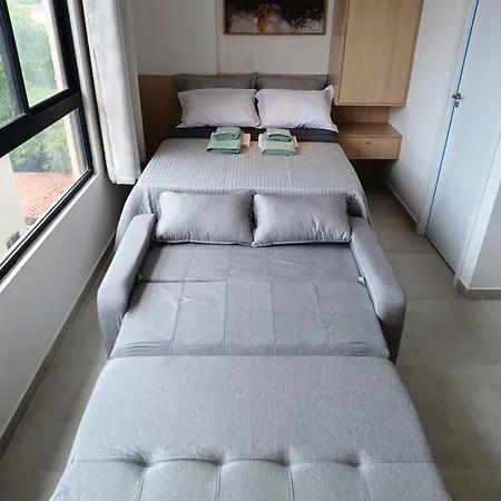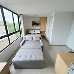这家23平方米的公寓设有小厨房。 住宿场所里有屋顶游泳池。